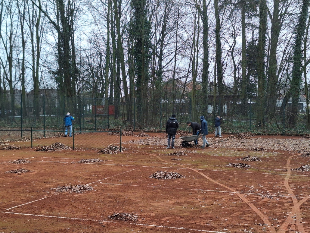 Das Wetter war etwas regnerisch, aber das hat die Mitglieder des TC Bassum e. V. nicht davon abgehalten, in großer Zahl zum Arbeitsdienst zu kommen. Am 13. und 14. März 2026 wurden die Sandplätze für die kommende Sommersaison vorbereitet. Wie üblich wurden die Steine von den Linen genommen, die Windabweiser aufgehängt und die Plätze am Petermoor von jeder Menge Laub befreit.